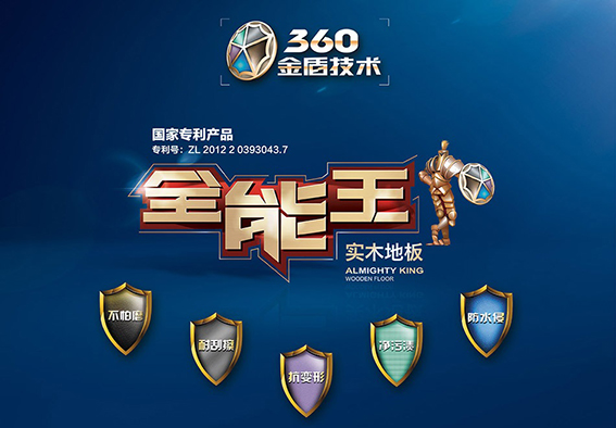 消費者的好評是全能王地板暢銷的外在原因,內在支撐點則是產品的技術力量。全能王系列地板獨家應用360金盾技術,經過28道涂覆工藝和紫外光固化工藝,將天然耐磨鈦金材料、防水硅晶材料、TSA抗污因子,通過浸潤式油漆微滲透技術使之形成一個系統的360金盾防護膜,專有抗污層、黃金比例12層漆面、防水層和穩定層,對實木地板實施全方位的均衡保護,令實木地板具有不怕磨、耐刮擦、防水侵、抗變形、凈污漬5項核心功能,全面解決實木地板在日常使用中遇到的各種問題。