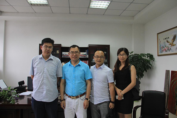 聯(lián)豐地板副總經(jīng)理李玉明(左二)與中華地板網(wǎng)總經(jīng)理朱云(右二)合影