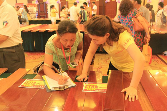 活動從上午10點開始就已經拉開了帷幕,在華雅華天國際酒店三樓湖南廳的活動現場,首先映入眼簾的便是玲瑯滿目的千余款產品,各個型號、花色的實木地板、強化地板、實木復合地板以及聯豐木門紛紛亮相,前來咨詢的人更是絡繹不絕。聯豐木業副總經理、營銷總經理李玉明先生也早早來到活動現場,擁擠的人群,踴躍參與的業主,成為活動現場一道亮麗的風景線。
