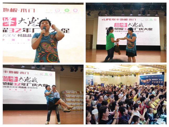 自古湖湘多美女,未見其人先聞其聲,隨著三湘第一美女—何晶晶爆笑登場,巔峰大惠戰(zhàn)迎來又一波高潮!懂什么是且胖且珍惜嗎?胖不是關(guān)鍵,地板撐不住也沒關(guān)系,關(guān)鍵是要有聯(lián)豐地板!在全場業(yè)主的歡呼中,何晶晶幽默的與觀眾互動(dòng)!