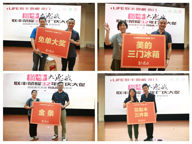 接著整點(diǎn)抽獎(jiǎng)環(huán)節(jié),驚喜送出近500份大禮——旺宅紅木大象、仿古實(shí)木椅、花梨木三件套、金條、美的三門冰箱、4999元免單大獎(jiǎng)都與現(xiàn)場的業(yè)主如約而至。總經(jīng)理李玉明在接受中華地板網(wǎng)記者采訪時(shí)表示,聯(lián)豐不僅要讓消費(fèi)者用最低的價(jià)格買到最好的聯(lián)豐產(chǎn)品,還要讓在場所有支持聯(lián)豐的朋友把終極的實(shí)惠帶回家。