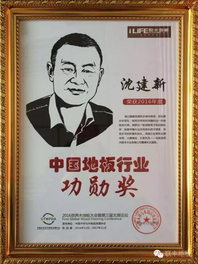 11月23日,在首屆世界木地板大會暨第三屆太湖論壇頒獎盛典上,蘇州聯豐木業有限公司沈建新董事長榮獲“中國地板行業功勛獎”。大器天成,歷經歲月的積累和洗禮,終見王者風范。