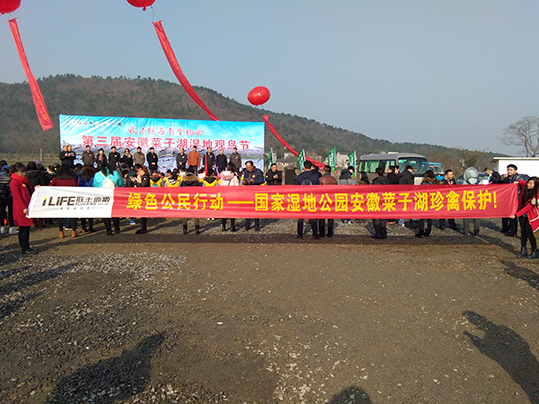 上午930分,綠色公民行動國家珍禽保護活動暨第三屆安徽安慶菜子湖濕地觀鳥節啟動儀式正式開始,作為由2011聯合國環境規劃署、國家林業局及中國綠化基金會共同發起的綠色公民行動系列活動之一,“綠色公民行動”旨在通過接地氣的活動方式,號召社會各界政府、企事業單位、個人攜手關注生態環境,帶動更多的人參與到生態環境的保護中來。而安徽安慶菜子湖濕地觀鳥節系列活動的舉辦,旨在讓更多人了解鳥類,了解濕地,增強大家珍惜濕地環境,關愛鳥類的意識,共同參與到保護鳥類,保護濕地,保護環境的工作中來。同時,通過舉辦安慶菜子湖濕地觀鳥節,逐年培育和打造菜子湖“濕地、候鳥、自然”品牌,擴大和推廣菜子湖濕地在安徽乃至全國的知名度和影響力。
