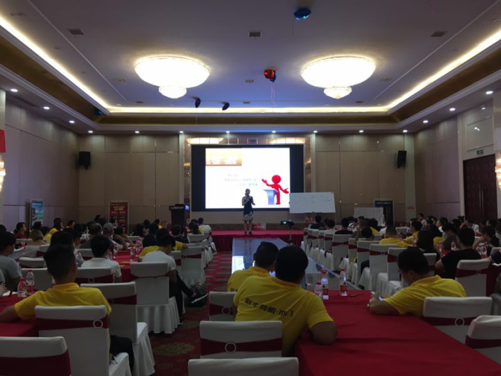 在學員們熱切期待中,聯豐木業總經理、商學院院長李玉明先生走上講臺,他就店長三大主要職能、三大知識系統,從優秀到卓越的三大層級作了精彩演講。如何打通單店營銷閉環,實現業績倍增,面對新形勢下的管理、激勵、促銷、話術、客情五大系統,李總以自己地板行業近二十年的豐富從業經驗和參訓學員們作了二天一夜的精辟分享。想成為贏家,必先成為專家,無論是五大產品定位、FABE銷售法則還是家居裝修風格,“肉搏”的實戰經驗,貼地氣的幽默風格,一個個演講主題都讓現場的學員們獲益百倍。
