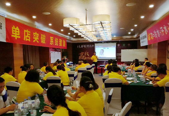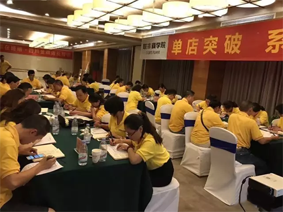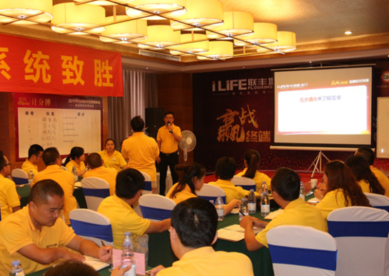 晚間六時起,余下的兩天兩夜是屬于聯(lián)豐全體四川銷售精英的狂歡,二十四小時電光火石般的金牌店長特訓(xùn)營給大家?guī)砹饲八从械念^腦風(fēng)暴,特訓(xùn)營主講聯(lián)豐木業(yè)總經(jīng)理、商學(xué)院院長李玉明先生以自己在地板行業(yè)近二十年的沉淀,豐富的實操經(jīng)驗,成功的營銷案例給在座的學(xué)員作了精彩分享!