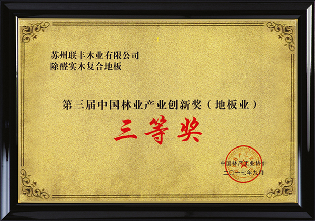 市場的青睞、行業的認可就是對聯豐創新精神的最大肯定,近日,聯豐地板憑借極富創新的除醛實木復合地板,從全國數千家地板企業中脫穎而出,獲授“第三屆中國林業產業創新獎(地板業)”。轉型升級以來,環保、除醛的健康實木地板,讓聯豐的創新理念得以深度體現,也讓聯豐獲得了市場的贊譽和行業的肯定。