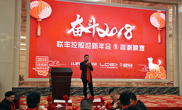 這是一個不斷變化的時代,這是一個翻天覆地的時代,這是一個讓人充滿夢想的時代。元月29日,奮斗2018——聯豐控股迎新年會暨答謝晚宴魅力南潯圓滿召開,來自于聯豐地板、聯豐木門、菱電電梯、福德木業的經銷商代表、供應商代表、全體員工以及關心和支持聯豐控股發展的社會各界人士參加了本次盛會,共同迎接、慶祝即將到來的傳統新春佳節。