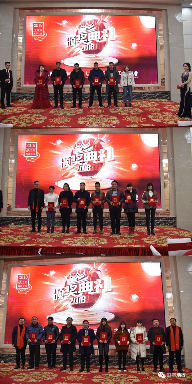 年度中國家居建材行業風云人物、聯豐木業總經理李玉明先生對2017年公司經營工作進行了全面回顧。他指出過去的一年,對于聯豐來說,是奮斗的一年,更是收獲的一年,地板實現20%以上的高速增長,創歷史新高,木門門店數量和銷售業績也實現重大突破。在品牌傳播、活動營銷、終端建設、產品創新、渠道擴張、科學生產等多個層面不斷升級聯豐的綜合服務能力。同時,地板和木門兩大生產基地新廠房的擴建也為2018年產能的擴張奠定堅實的基礎。李總最后用一首《新·賦》詩形象的再現2017所取得的輝煌以及2018共赴新征程,共創新輝煌的決心。