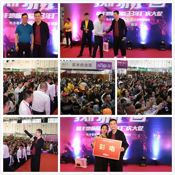 在近萬名業(yè)主翹首以盼中,蘇州聯(lián)豐木業(yè)有限公司總經(jīng)理李玉明先生首先致歡迎詞,他指出,始創(chuàng)于1985年的聯(lián)豐,在榮耀33年的發(fā)展歷程中,一直都是以最好的產(chǎn)品,最佳的服務(wù)來奉獻(xiàn)給廣大的業(yè)主,適逢周年大慶,聯(lián)豐不搞大型慶典,而是連續(xù)三年以南京作為主會(huì)場(chǎng),在全國(guó)二十多個(gè)省區(qū)設(shè)置分會(huì)場(chǎng),同日掀萬人瘋搶狂潮。