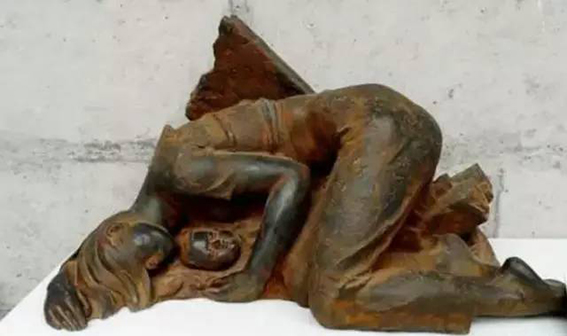這個(gè)雕塑作品,名叫《汶川母親》,表現(xiàn)的畫(huà)面是:汶川地震救援過(guò)程中,一位女警察用乳汁哺育受災(zāi)兒童。