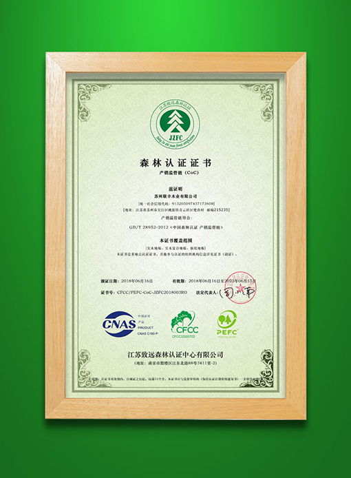 引領(lǐng)健康消費(fèi)潮流的聯(lián)豐在榮獲“中國(guó)地板環(huán)保品牌”之后,率先獲得中國(guó)森林認(rèn)證產(chǎn)銷監(jiān)管鏈(CFCC-COC)證書(shū),成為試點(diǎn)企業(yè)中第一家通過(guò)產(chǎn)銷監(jiān)管鏈認(rèn)證的地板企業(yè)。這意味著聯(lián)豐擁有了突破林產(chǎn)品貿(mào)易壁壘、拓展產(chǎn)品市場(chǎng)準(zhǔn)入空間的“綠色通行證”,也是對(duì)聯(lián)豐踐行綠色發(fā)展理念,促進(jìn)森林資源有效保護(hù),維護(hù)生態(tài)環(huán)境良性循環(huán)、履行社會(huì)責(zé)任的最好褒獎(jiǎng)。