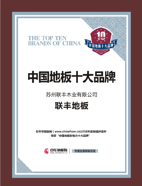 9月10日,由中華地板網舉辦的年度網絡盛選“2018中國地板十佳品牌、地板十大品牌”圓滿落幕,踏上品牌征程33年的聯豐地板繼2016、2017年度之后連續第三次榮獲“2018中國地板影響力十大品牌”。