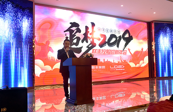 這是你我不變的約定,這是你我不變的儀式。這是你我用生命力撰寫的壯麗詩篇,這是你我用生命力譜寫的華美樂章。時光呼嘯,2019年正迎面而來!1月21日,追夢2019——聯豐控股集團迎新年會圓滿落幕,來自于聯豐地板、聯豐木門、菱電電梯、福德木業的經銷商代表、供應商代表、全體員工參加了本次盛會,共同迎接即將到來的新春佳節。