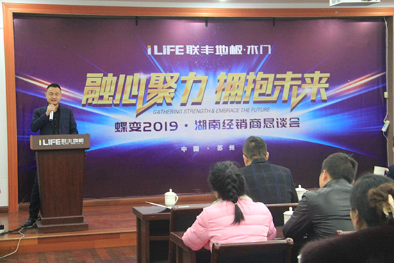 春暖花開,萬物復(fù)蘇。2月26日,尚沉浸在傳統(tǒng)節(jié)日春節(jié)喜悅中之際,融心聚力·擁抱未來——蝶變2019湖南經(jīng)銷商懇談會(huì)在公司總部成功召開。大會(huì)圍繞著2019年度湖南的市場形勢作出部署,強(qiáng)調(diào)應(yīng)順勢而變,進(jìn)一步優(yōu)化資源,全面實(shí)現(xiàn)扁平化管理模式,實(shí)施“產(chǎn)品、政策、管理”三接軌戰(zhàn)略,增強(qiáng)對(duì)終端門店的運(yùn)營管理與指導(dǎo),提升各門店的盈利能力和盈利成果。蘇州聯(lián)豐木業(yè)公司董事長沈建新、總經(jīng)理李玉明以及營銷中心管理團(tuán)隊(duì)、湖南核心經(jīng)銷商匯聚一堂,共商共議。