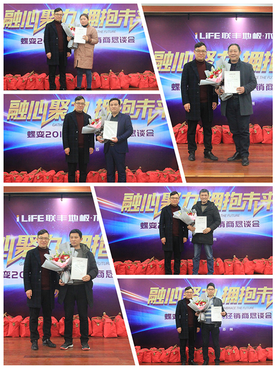 市場有域心無界,面對(duì)日趨激烈的競爭,他們迎難而上,無論炎炎夏日還是凜冽寒天,他們整日奔波市場上,積極開拓新的渠道,尋找新的利潤增長點(diǎn)。心有多寬,市場就有多大, 18年的數(shù)據(jù)記錄著他們不斷超越、勇攀高峰的驕人業(yè)績,湘潭、攸縣、石門、冷水江、衡山、張家界、岳陽、吉首、安鄉(xiāng)、梅城等獲得年度十大優(yōu)秀經(jīng)銷商,聯(lián)豐木業(yè)總經(jīng)理李玉明、湖南營銷中心總經(jīng)理羅雙宏為優(yōu)秀者頒獎(jiǎng)。