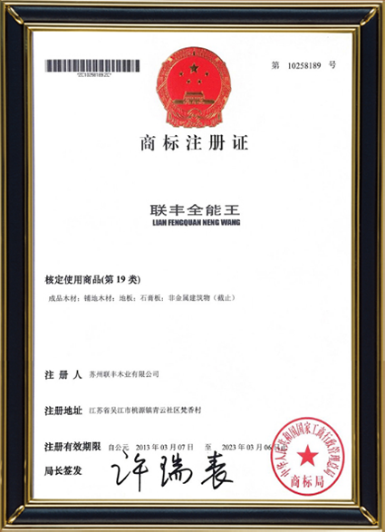 第三,聯豐木業早在“全能王”系列產品上市時,就已為該系列名稱注冊商標,以保護聯豐在法律上對“全能王”的絕對所有權!