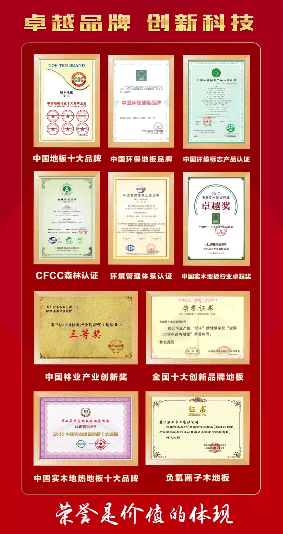2018年,是聯(lián)豐躍馬揚鞭,不斷奮進的一年。從多年蟬聯(lián)中國地板十大品牌、中國地板影響力十大品牌、中國地板十佳品牌(地暖類),到中國地板質量售后服務金獎、地板類第一個中國森林認證CFCC-COC證書,再到榮膺“改革開放40年實木地板業(yè)風云人物”.……風水生起逐浪高,聯(lián)豐的品牌影響力不斷增強。