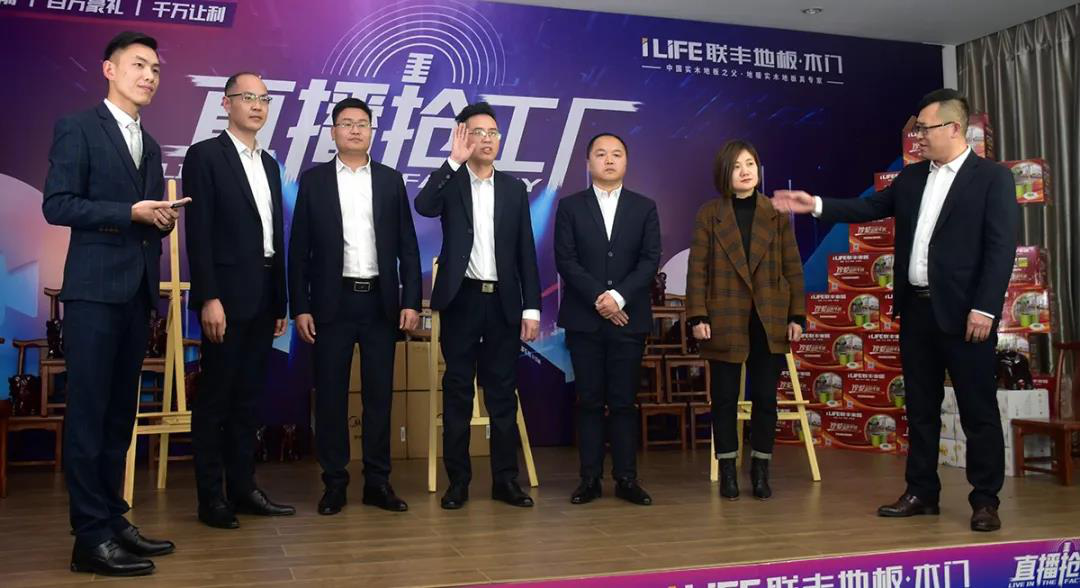 聯豐木業總經理李玉明致開幕詞,他指出,作為始于1985年的行業拓荒者,作為一家以匠心做產品,以初心塑品牌的企業,聯豐一直踐行以消費者為中心理念。每一年的廠慶,我們都會要用最優產品、最優價格,最優服務來回報消費者的厚愛和支持。今天,我們終于迎來冬去春來,疫散花開,我們的愛也將再次起程,只不過這一次,我們不再是以往的線下萬人瘋搶,我們攜全國1000多家門店,與大家在云端相見,讓您足不出戶盡享品牌盛宴。總部操盤,讓您省心更舒心,質量保證,讓您稱心更安心,無憂下訂,讓您開心更放心。李總的“六心”承諾讓直播間的老鐵們刷爆666。