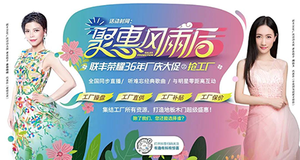 2020年初新冠肺炎疫情的發生,對人類社會造成了全球性、全領域的沖擊,各行業都遭受著不可估量的沖擊,家居建材行業也不例外,一度出現線下門店停擺、整體市場交易遇冷的情況,但家居需求只是被壓抑并沒有消失。隨著疫情漸已遠去,建材消費市場也在快速回暖,為打贏后疫情時代新一輪的品牌戰,市場份額搶奪戰,聯豐將于8月份在全國千家門店同時啟動“聚惠風雨后”——聯豐榮耀36年廠慶大促,最大程度地讓利千萬業主,以慶祝自己36歲生日,8月15日邀請內地著名歌手慕容曉曉親臨工廠總部,8月22日邀請著名歌手陶鈺玉親臨湖南長沙,為廠慶大促助力加油。同時,活動期間我們將面對全國消費者開展全網直播互動,線上線下同享鉅惠。