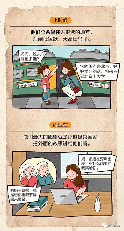 臺灣作家龍應臺說“所謂父母子女一場,只不過是意味著,你和他的緣分就是今生今世不斷地在目送他的背影漸行漸遠。你站在小路的這一端,看著他逐漸消失在小路轉彎的地方,而且,他用背影默默地告訴你,不用追。”也許父母和孩子,真的不能時時刻刻的陪伴,當我們因為工作,又或因為成家、養育子女種種原因,無法抽空看望家里的老人時,不妨給予他們更多更真切的關懷。