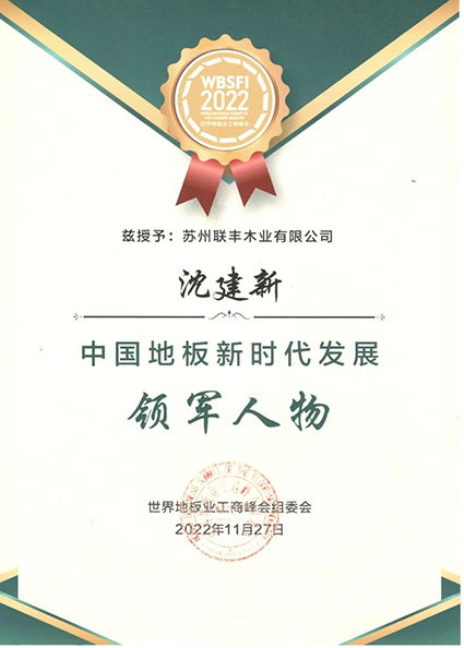 聯(lián)豐憑借在地板領(lǐng)域技術(shù)創(chuàng)新精神榮膺2022世界地板業(yè)工商峰會金獎產(chǎn)品,董事長沈建新獲中國地板新時代發(fā)展領(lǐng)軍人物,雙料殊榮為聯(lián)豐在地板領(lǐng)域的成就再添華彩篇章!