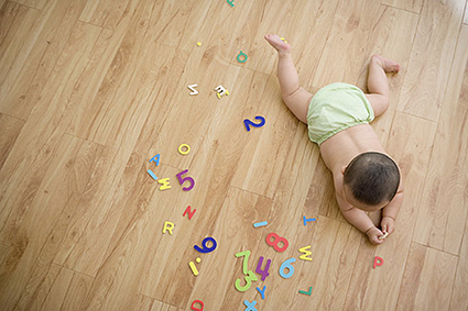 在地板上學走路摔跤了爬起來擦擦眼淚繼續